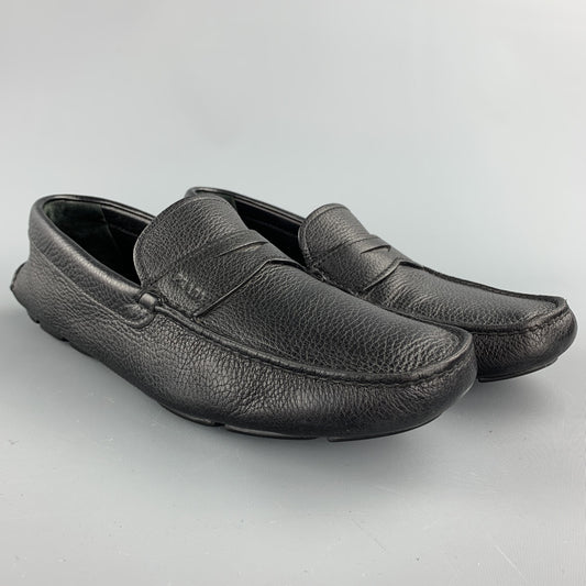 PRADA Size 8.5 Black Leather Drivers Loafers
