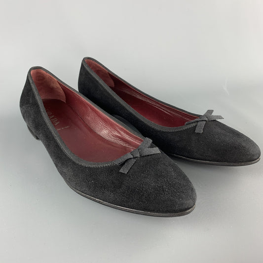 PRADA Size 10.5 Black Suede Pointed Bow Flats
