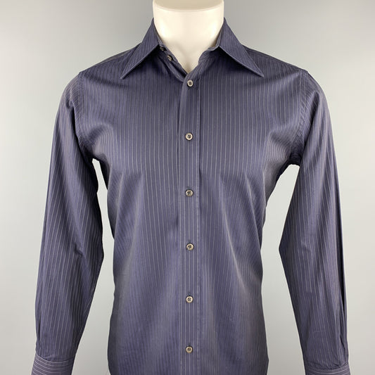 PRADA Size S Navy Stripe Cotton Button Up Long Sleeve Shirt