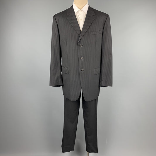 PRADA Size 48 Long Black Stripe Wool Notch Lapel Suit