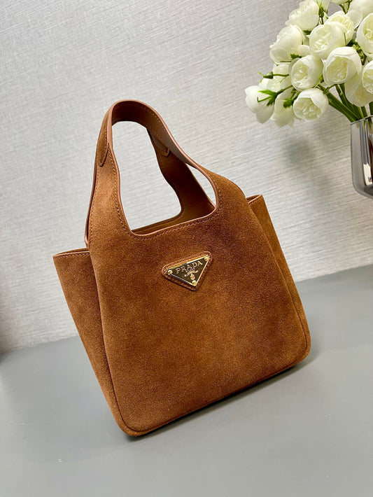 PRADA MINI TOTE BAG 18 IN RED BROWN SUEDE GOLD LOGO