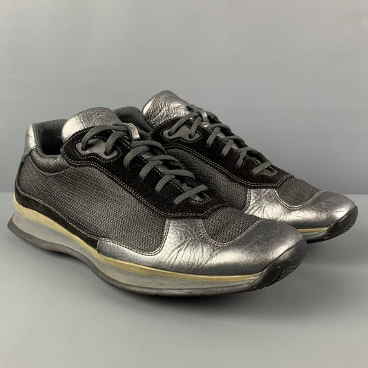 PRADA Size 12 Gray Black Leather Lace Up Sneakers