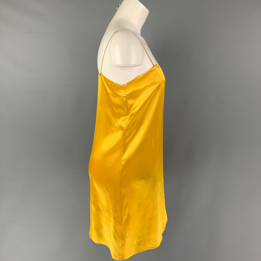 PRADA Size 2 Gold Silk Logo Spaghetti Straps Dress