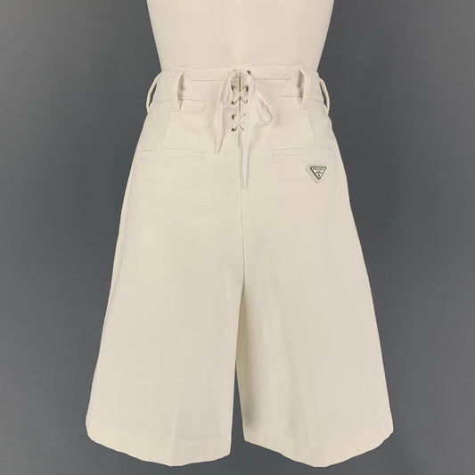 PRADA Size 2 White Cotton Wide Leg Shorts