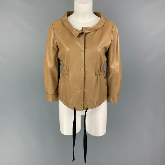 PRADA Size 4 Tan Leather 3/4 Sleeves Jacket