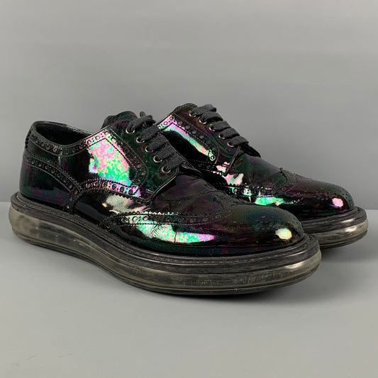 PRADA Size 7.5 Black Iridescent Leather Platform Lace Up Shoes