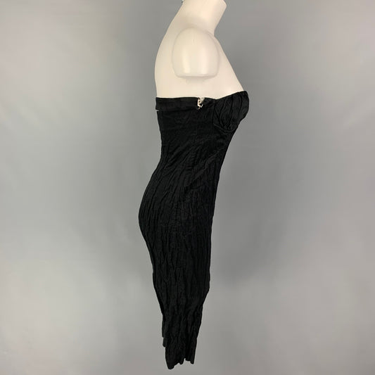 PRADA 2008 Size 6 Black Cotton Blend Wrinkled Halter Cocktail Dress