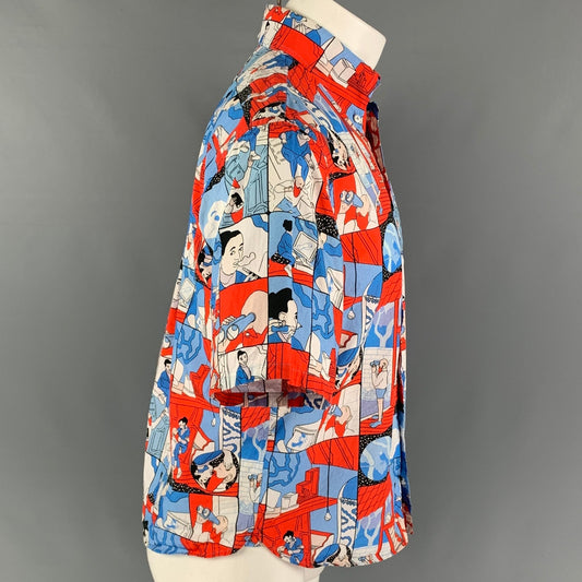 PRADA SS 18 Comic Collection Size S Red Blue Graphic Cotton Short Sleeve Shirt