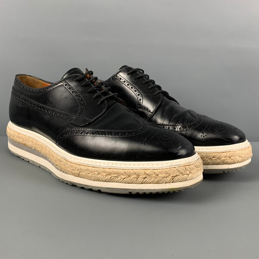 PRADA Size 10 Black White Perforated Leather Platform Lace Up Shoes