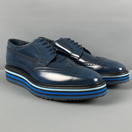 PRADA Size 10 Blue Black Perforated Leather Platform Lace Up Shoes