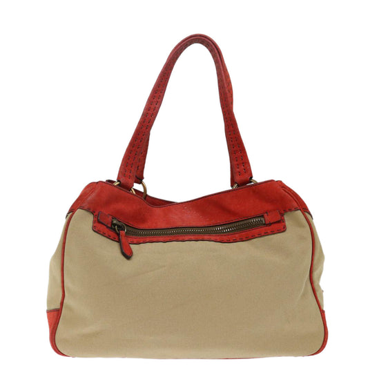PRADA Hand Bag Canvas Beige Red bs13613
