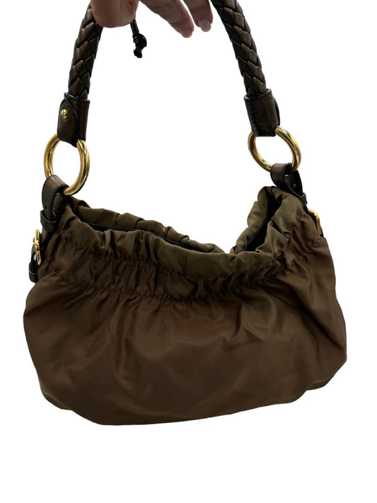 PRADA - Gathered Handbag Khaki Nylon Leather