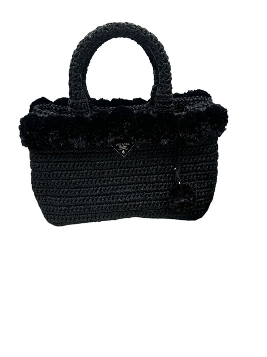 PRADA - Canapa Tote Bag Black Rayon Raffia