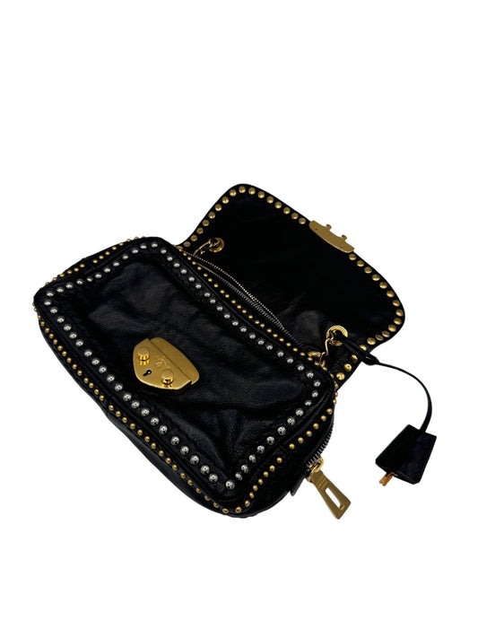 PRADA - Black Glace Leather Rose Shoulder Bag