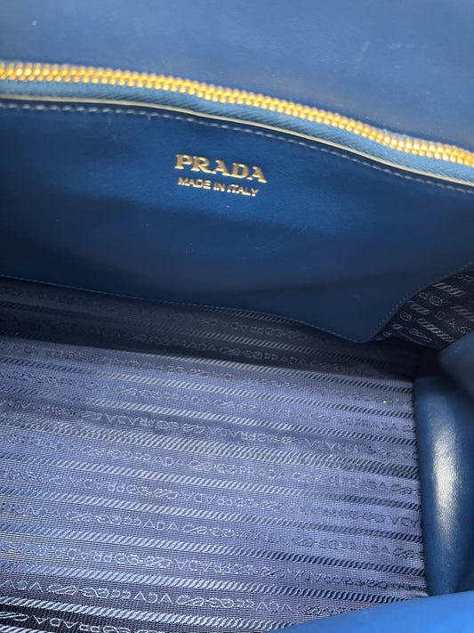 PRADA - Blue Saffiano Cuir Leather Monochrome Shoulder Bag