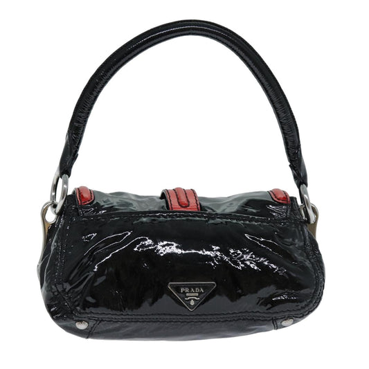 PRADA Shoulder Bag Patent leather Black Red 74391