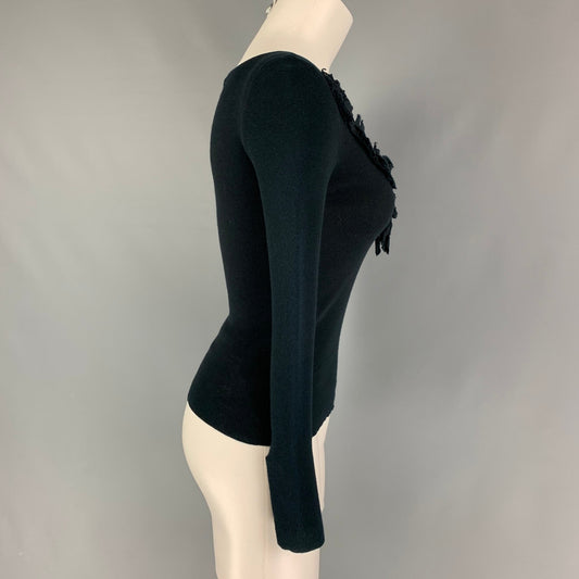 PRADA Size 2 Black Wool Long Sleeve Cardigan