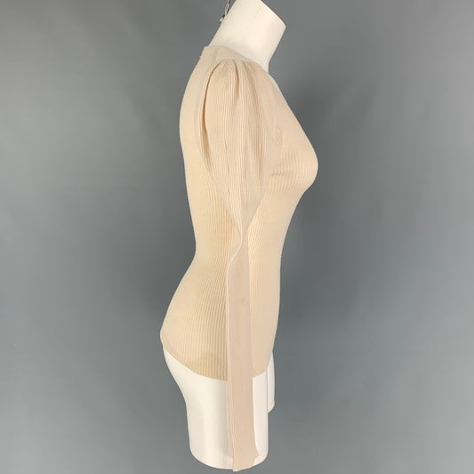 PRADA Size 4 Beige Ribbed Scoop Neck Pullover