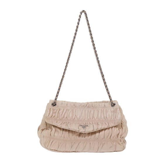 PRADA Chain Shoulder Bag Leather Beige bs10858