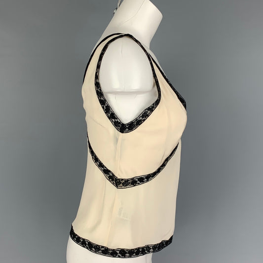 PRADA Size 4 Cream Black Silk Mixed Fabrics Camisole Dress Top