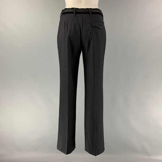 PRADA Size 4 Black Virgin Wool Pinstripe Straight Dress Pants