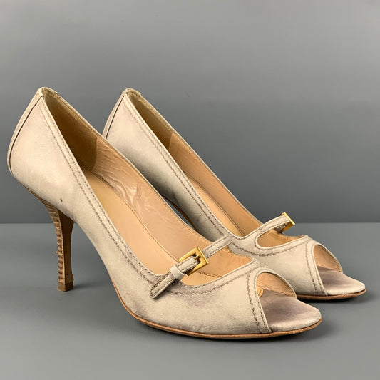 PRADA Size 6.5 Taupe Silk Sequined Peep Toe Pumps