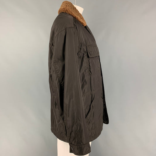 PRADA Size XL Dark Brown Shearling Collar Parka Jacket