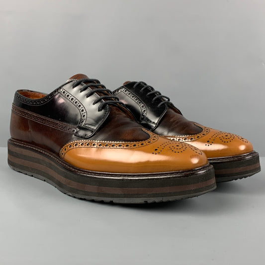 PRADA Size 10 Brown Tan Perforated Leather Wingtip Lace Up Shoes