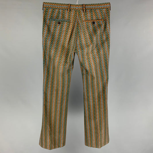PRADA Size 32 Green Blue Squares Cotton Casual Pants