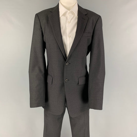 PRADA Size 36 Black Charcoal Virgin Wool Silk Notch Lapel Suit