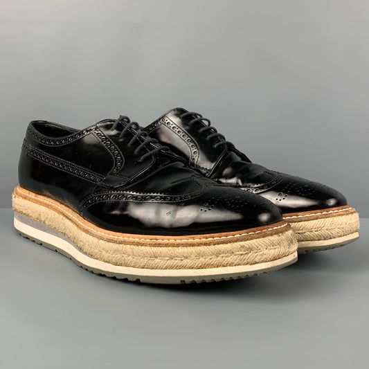 PRADA Size 10.5 Black Perforated Leather Wingtip Lace Up Shoes