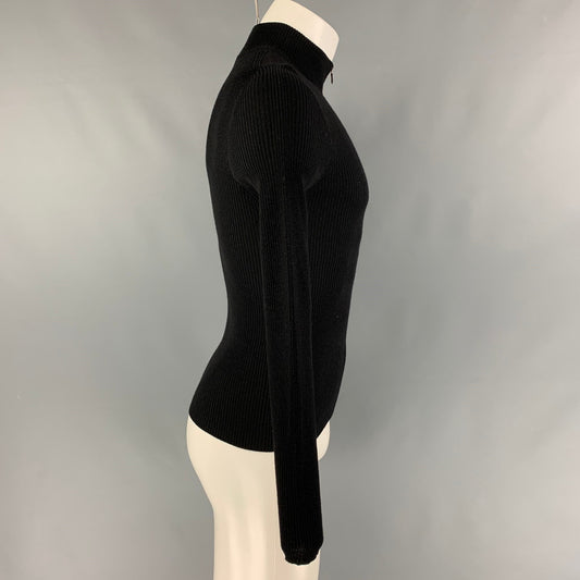 PRADA Size S Black Ribbed Wool Zip Up Cardigan