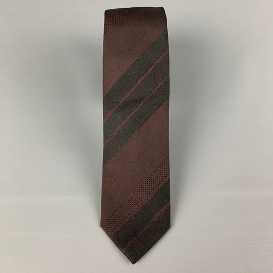 PRADA Brown Black Diagonal Stripe Silk Tie