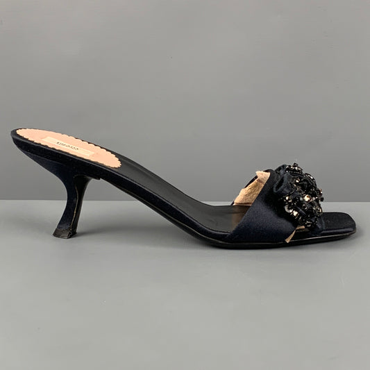 PRADA Size 6.5 Navy Silk Bow Mule Sandals