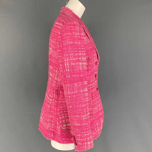 PRADA Size 14 Pink White Cotton Blend Woven Jacket