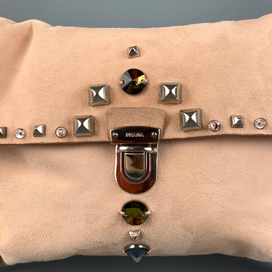 PRADA Pink Studded Rhinestone Suede Evening Handbag
