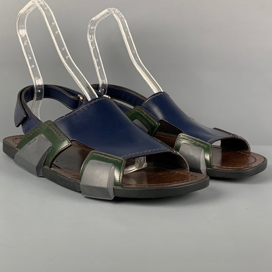PRADA Size 11 Blue Green Two Toned Leather Sandals
