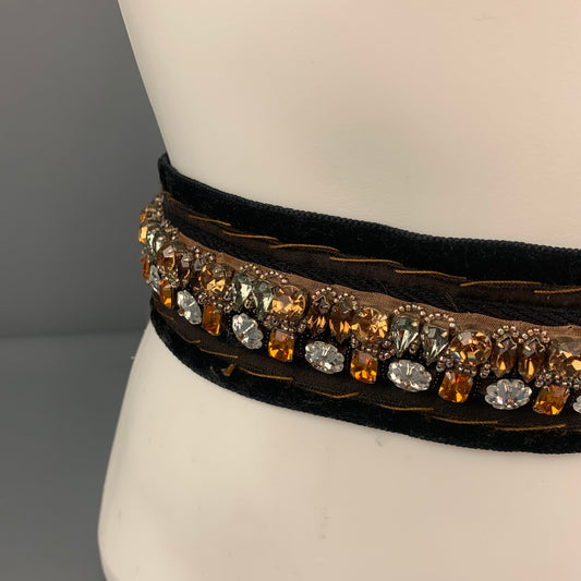 PRADA One Size Black Gold Velvet Rhinestones Belt