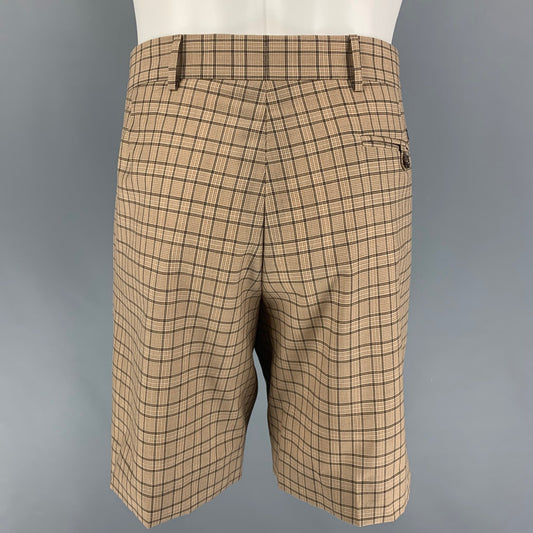 PRADA Size 38 Beige Brown Plaid Lana Wool Mohair Shorts