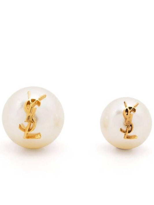 Saint Laurent Cassandre Pearl Earrings in Metal Gold And Cream