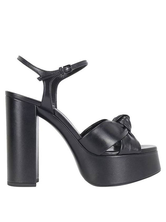 Saint Laurent Women's Knot Platform Leather Sandals Heel Black