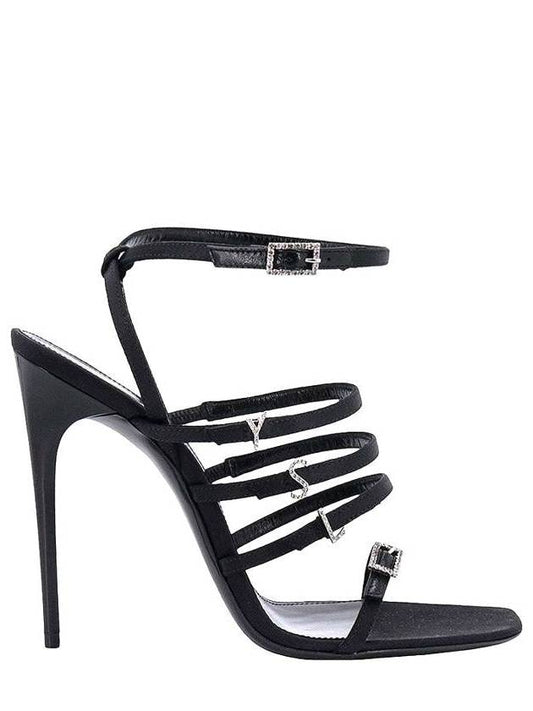 Saint Laurent Jerry Logo Satin Sandals Heel Black