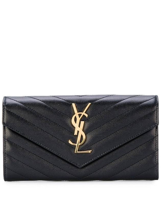 Saint Laurent Matelasse Monogram Quilting Leather Flap Long Wallet Black