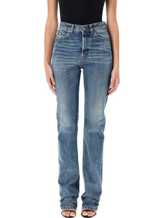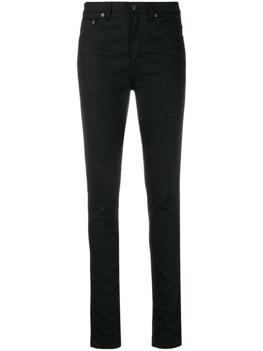 Saint Laurent Mid Rise Cotton Skinny Jeans Black