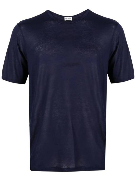 Saint Laurent Reverse Logo Print Cotton Short Sleeve T-Shirt Navy