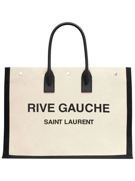 Saint Laurent Rive Gauche Canvas Smooth Leather Large Tote Bag Black