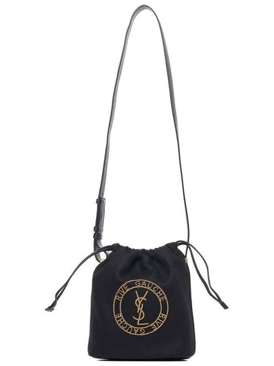 Saint Laurent Embroidered Felt Smooth Leather Rib Gauche Lace Bucket Bag Black