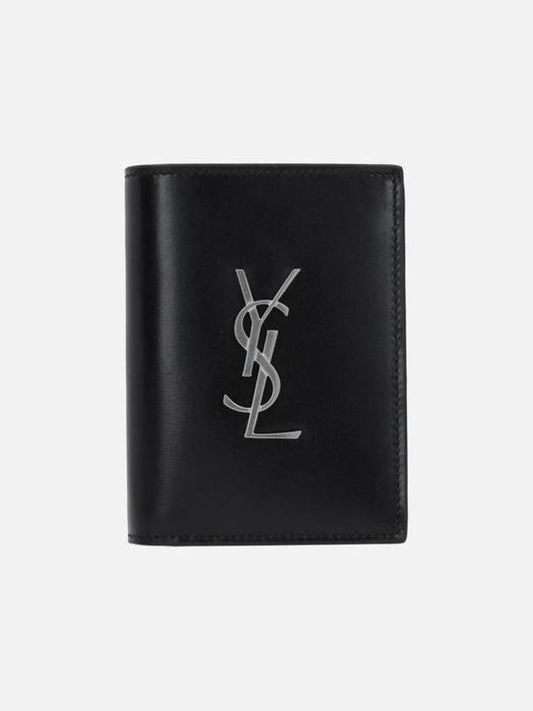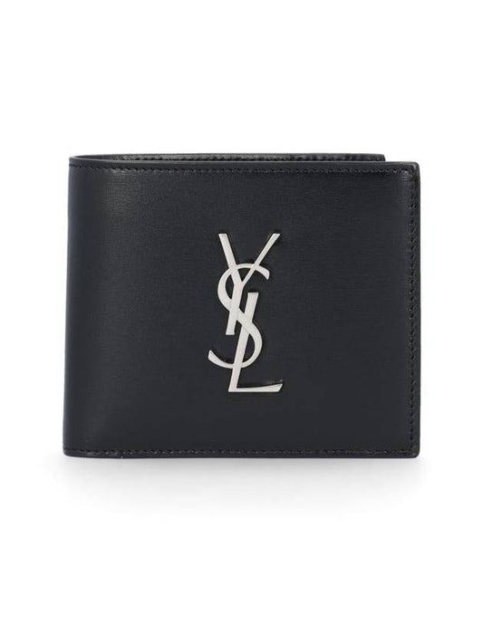 Saint Laurent Men's Silver Monogram Fold Half Wallet Black