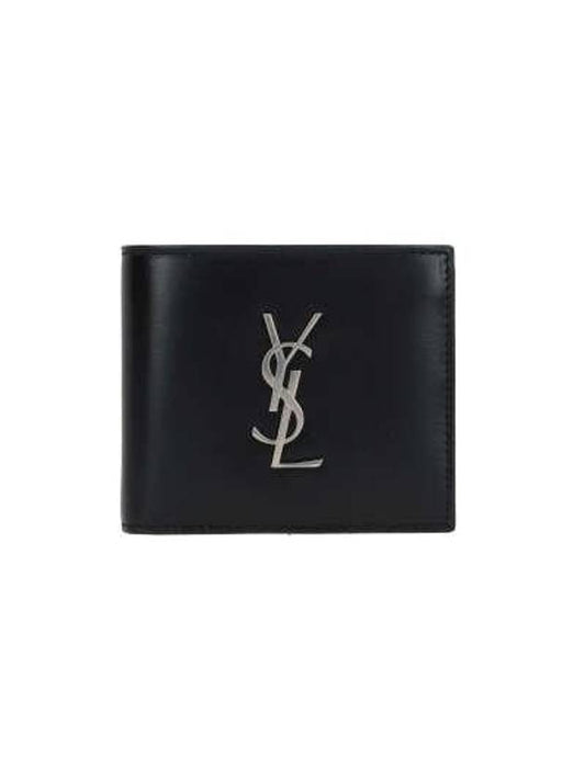 Saint Laurent Monogram Leather Gold Zipper Card Wallet Black