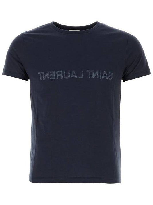 Saint Laurent Reverse Logo Print Cotton Short Sleeve T-Shirt Navy